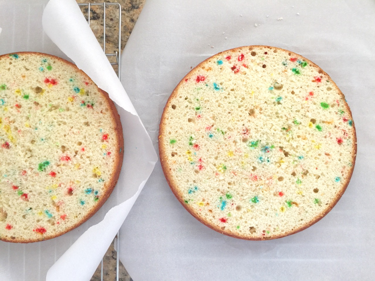 I followed the directions and mixed it all up, dividing the batter into two 8″ cake pans. Into the preheated 350° F oven they went. Now it was time to have some fun.