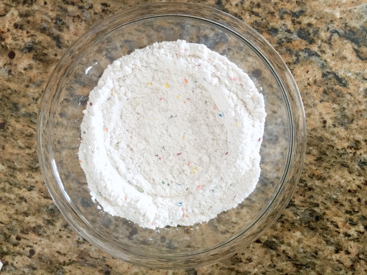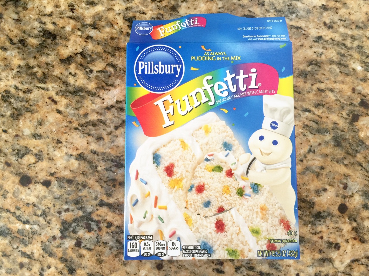 One of the recipes on my to do list for the Kitchen was to try one cup of starter with a boxed cake mix. Since I knew there was a sprinkly cake mix on the market, this felt like the perfect time to give it a go. I also grabbed vanilla frosting and some marzipan off the shelf. We have recipes to make both of these from scratch in the Recipe Box, but remember, I was going for fast and easy. I had a birthday party to organize!