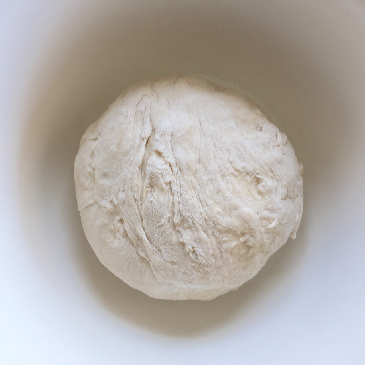 - Place the dough ball in a greased bowl and cover with plastic wrap. Let the dough rise for 1 hour or until it has almost doubled in size.