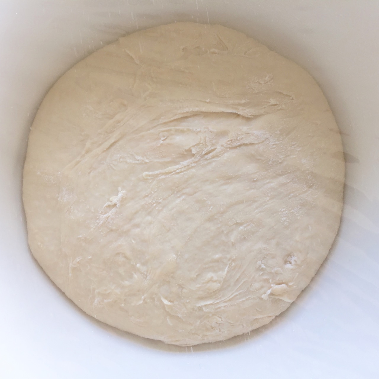On the dough has risen, place onto a floured surface and roll into a circle or disc.